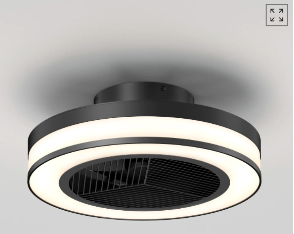 Compact ceiling fan glowing bright with modern matte finish, buy now for $209.99.